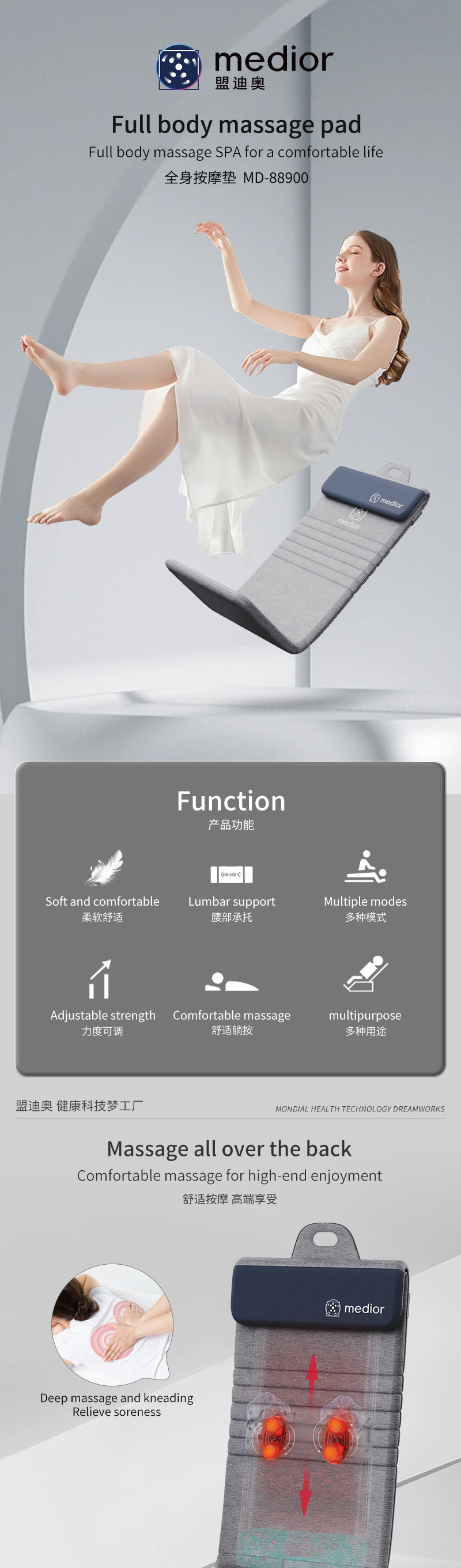 1、L型機(jī)芯結(jié)構(gòu),對(duì)折包裝縮小體積2、獨(dú)家專利柔性機(jī)芯3、力度三檔調(diào)節(jié),定點(diǎn)按摩,腰背按摩、臀腿按摩、全背按摩模式選擇4、背部行走揉捏,按摩區(qū)域加長(zhǎng)到從肩膀到大腿;5、更加貼合不同款式的椅子整體可對(duì)折收納