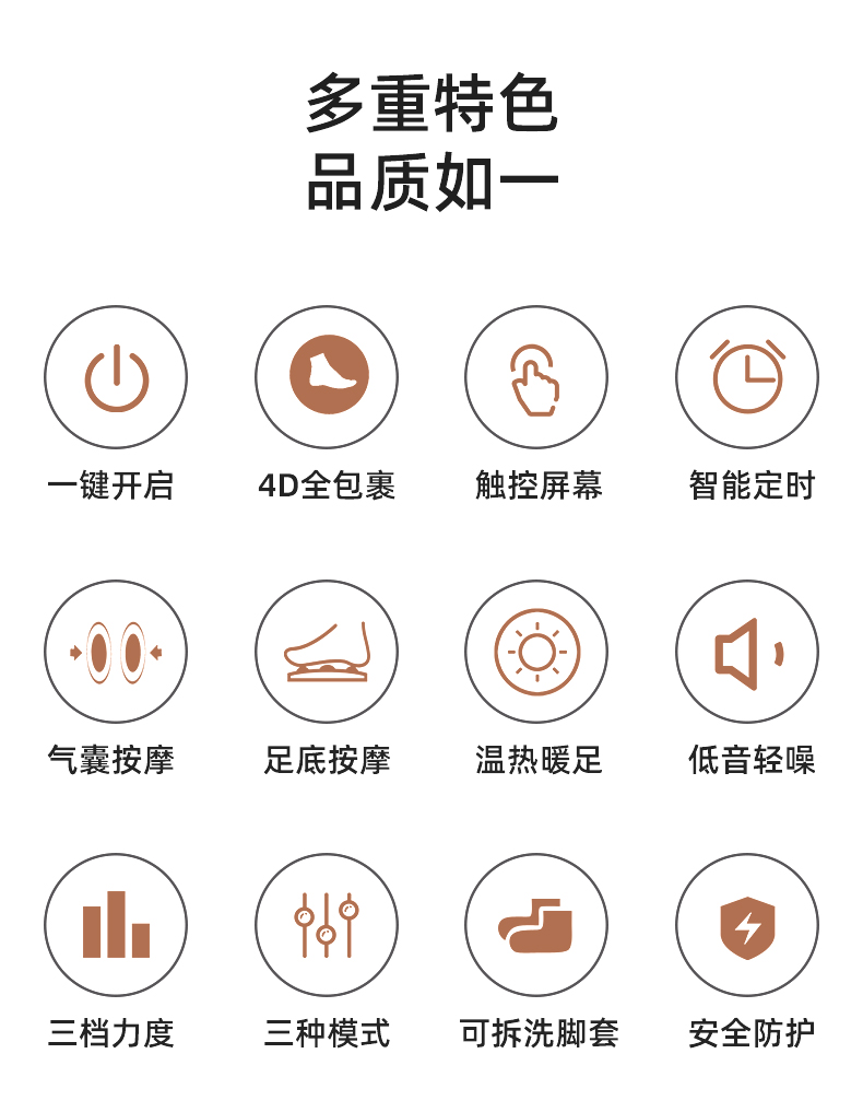 空氣壓縮腳底按摩器腳底壓腳板,腳掌刮擦,椎板(腳跟)按摩(多模式,多強度)
